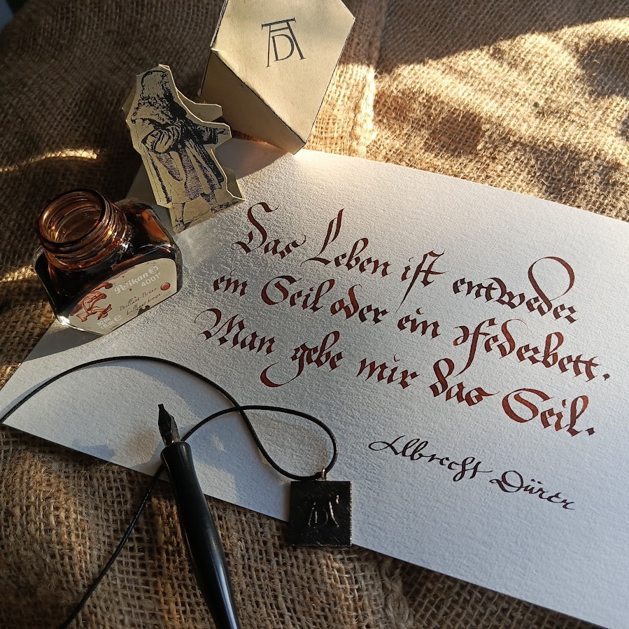 Podczas warsztatów prześledzimy, jak podróże formowały artystyczną drogę Dürera, owocując również niezwykłym bogactwem stylów pisma, które pojawiają się w jego dziełach: od uroczystej tekstury po swobodną kursywę. Szczególną uwagę poświęcimy dynamicznej, ostrej i precyzyjnej bastardzie, którą artysta z kreślił opisy w swoim słynnym „Traktacie o kreśleniu cyrklem i linią”.